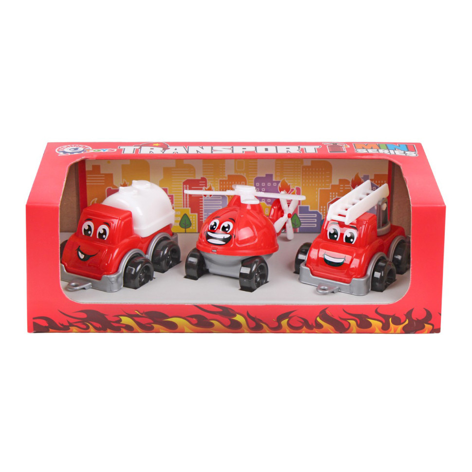 Іграшка "Транспорт Міні ТехноК" - це набір відважних "пожежних". Швидкий вертоліт, поважний цистерновоз та пожежна машина поспішають на допомогу ляльковим героям! Такі сюжетно-рольові ігри дуже корисні для дітей, вони розвивають уяву, мислення та фантазію. Усі члени пожежної команди наділені емоціями – очі та посмішка нанесені безпечним для дітей методом тамподруку. Виготовлені іграшки із якісної пластмаси, без запаху. Упаковка – яскрава подарункова коробка.