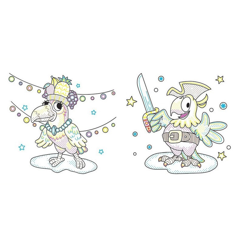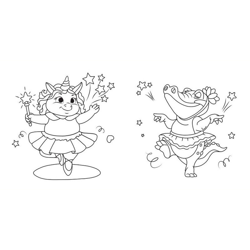 Ласкаво просимо на новорічний маскарад! Тут на вас чекають звірята у неймовірних костюмах, море веселощів і яскравих барв. Фарби вже є на сторінках, треба лише взяти воду, пензлик і натхнення — і гайда створювати справжню святкову феєрію!