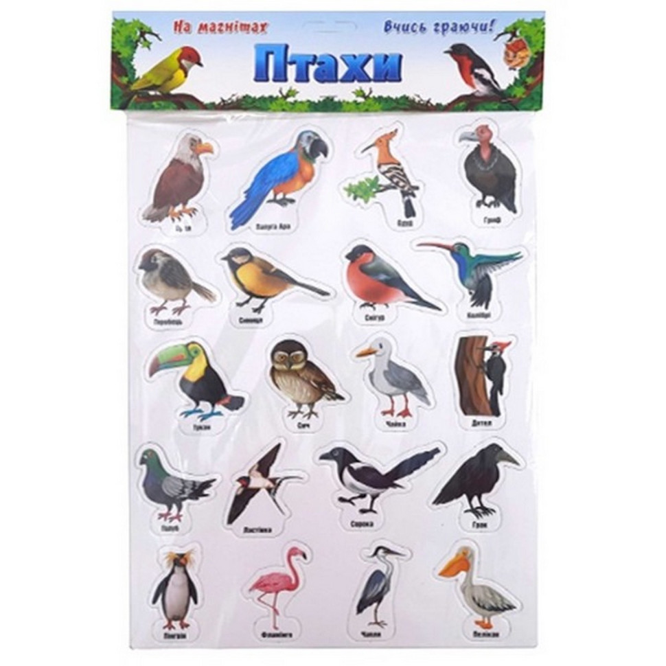 Набір магнітних фігурок "Птахи" від виробника Artos з реалістичними зображеннями птахів. Магнітні фігурки допоможуть дитині познайомитися з тваринами, навчитися розрізняти їхні розміри, класифікувати за особливими ознаками. Магніти великі, міцні, безпечні, практичні.
