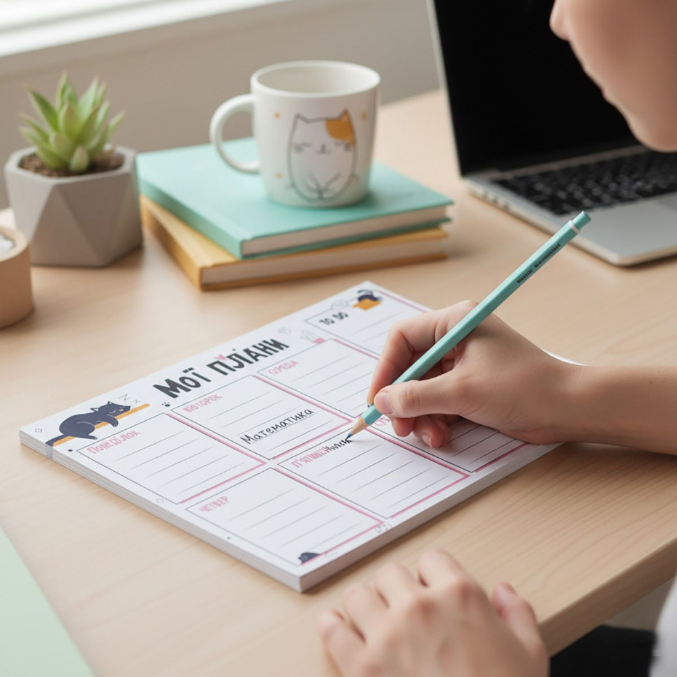 Зручний тижневий планер від Vladi Toys - це компактний та стильний помічник для організації навчання, роботи й особистих справ. Формат 20×14,3 см ідеально підходить для рюкзака, сумки або робочого столу, а україномовне наповнення робить планування максимально комфортним.