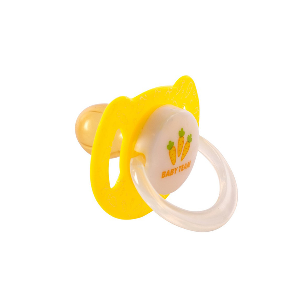 Пустушка латексна Baby Team (Бебі Тім) задовольняє природний рефлекс смоктання і тренує губні м'язи та щелепи, відіграє важливу роль у розвитку мовних навичок і навичок приймання їжі.