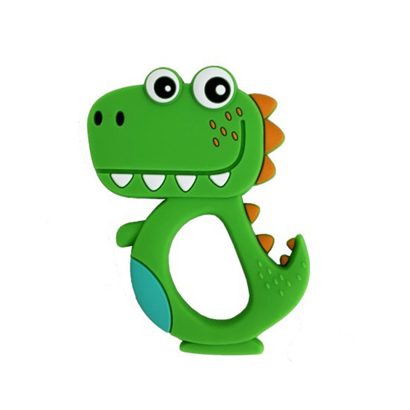 Силіконовий прорізувач Динозаврик. Найперше, чого варто вдатися в момент появи зубів, це прорізувач. ПЕРЕВАГИ: - Ефективніше знижує біль у яснах; - Гарні форми, які привертатимуть увагу малюка; - Невелика вага забезпечує зручне захоплення ручками; - Допомагає розвивати дрібну моторику рук; – Рифлена поверхня дозволяє зменшити свербіж та неприємні відчуття при зростанні перших зубів дитини; ХАРАКТЕРИСТИКИ: - матеріал - харчовий силікон; - Не містить Бісфенол А;