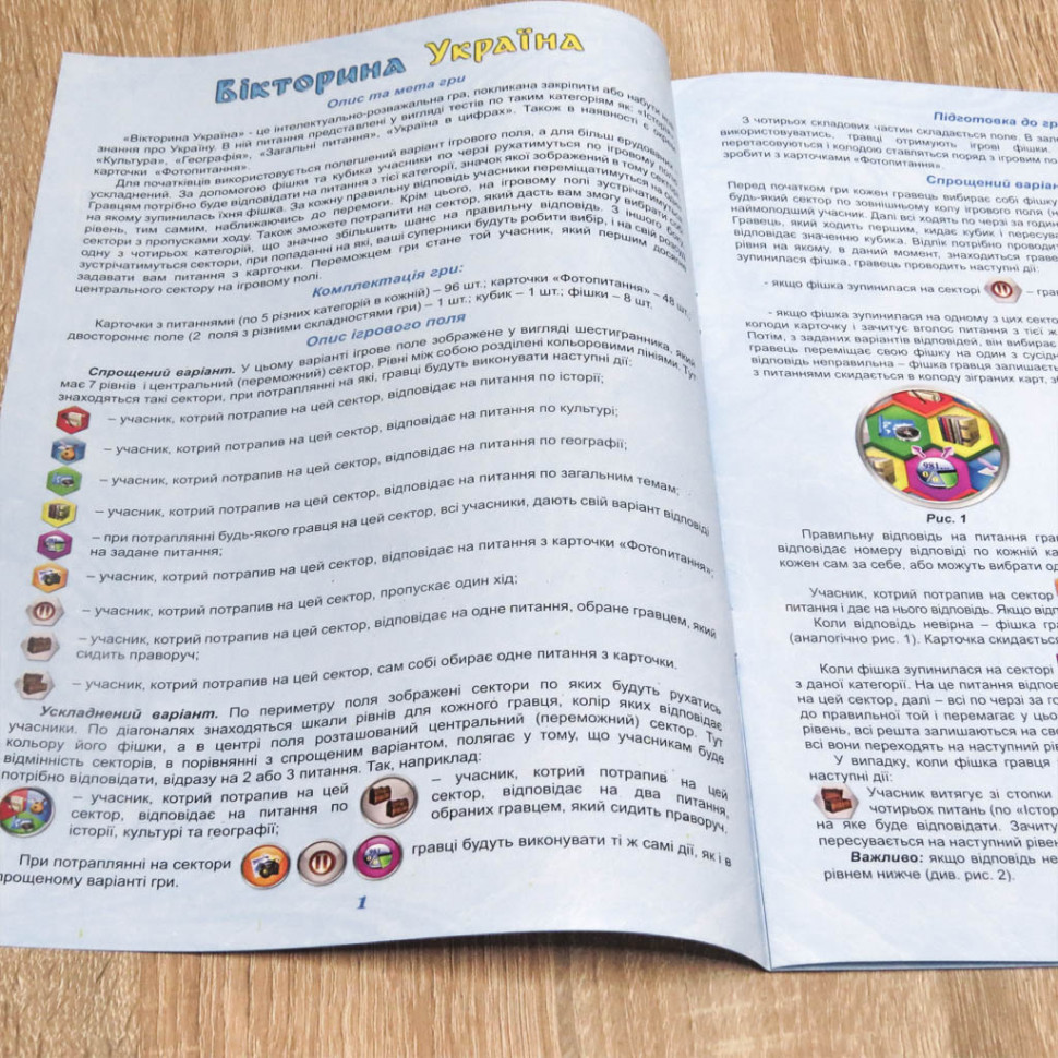 Для початківців використовується полегшений варіант ігрового поля, а для більш ерудованих - ускладнений. За допомогою фішки і кубика учасники по черзі рухаються по ігровому полю. Гравцям потрібно буде відповідати на питання з тієї категорії, значок якої зображений в тому секторі, на якому зупинилася їхня фішка.
