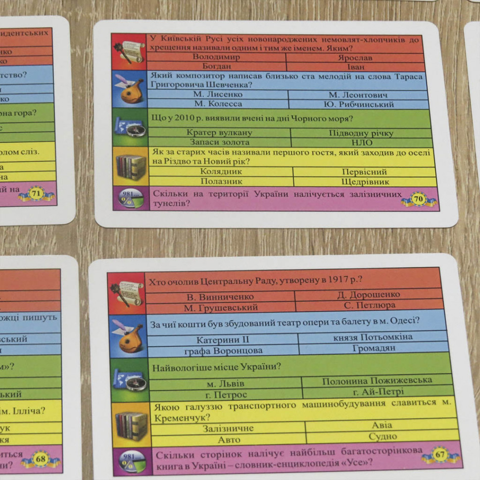 Картки з питаннями (по 5 різних категорій у кожній) - 96 шт.