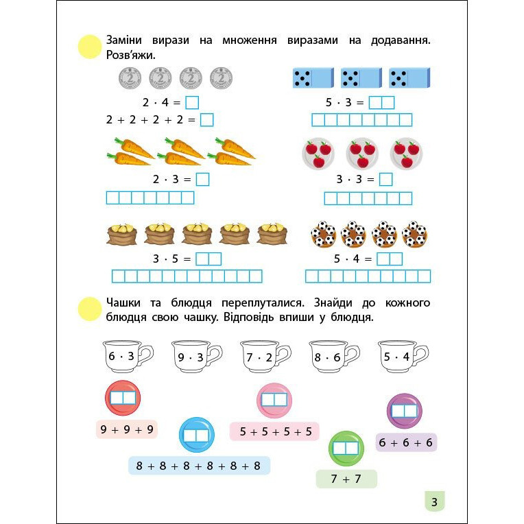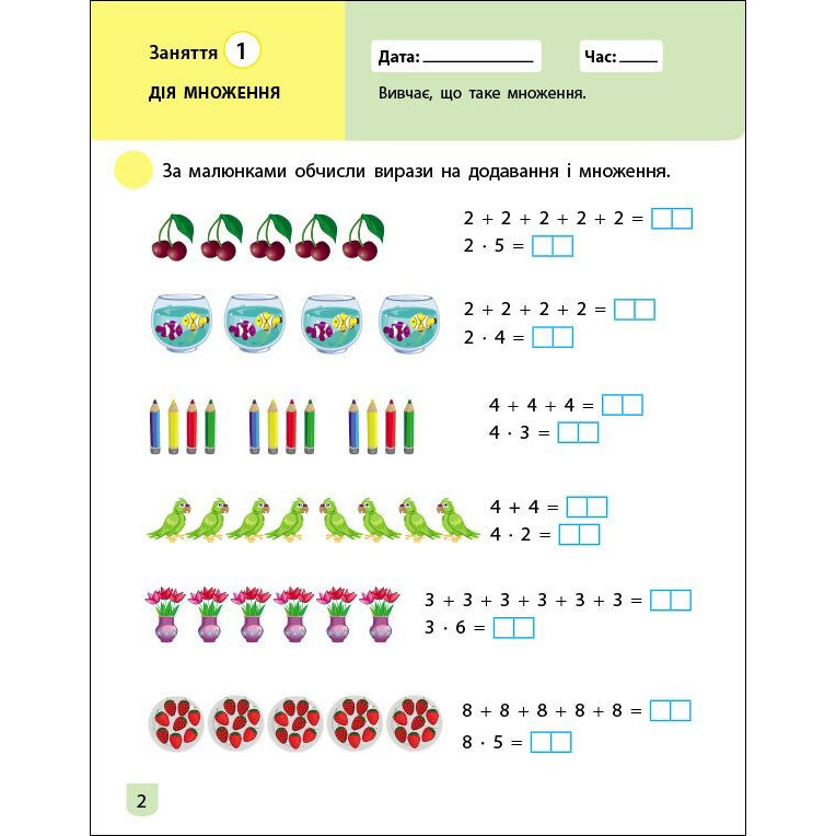 «Математика 2 клас 2 частина» — зошит, що допомагає вивчити множення і ділення, розуміти їх зв'язок, навчитися знаходити компоненти дій. Понад 30 тренувальних занять та 105 яскравих завдань для дій з числами. Щоб заняття були цікавими, кожне виконане завдання позначайте наліпкою-пташкою, щоб результативними — записуйте дату, коли виконуєте завдання і за скільки часу впоралися.